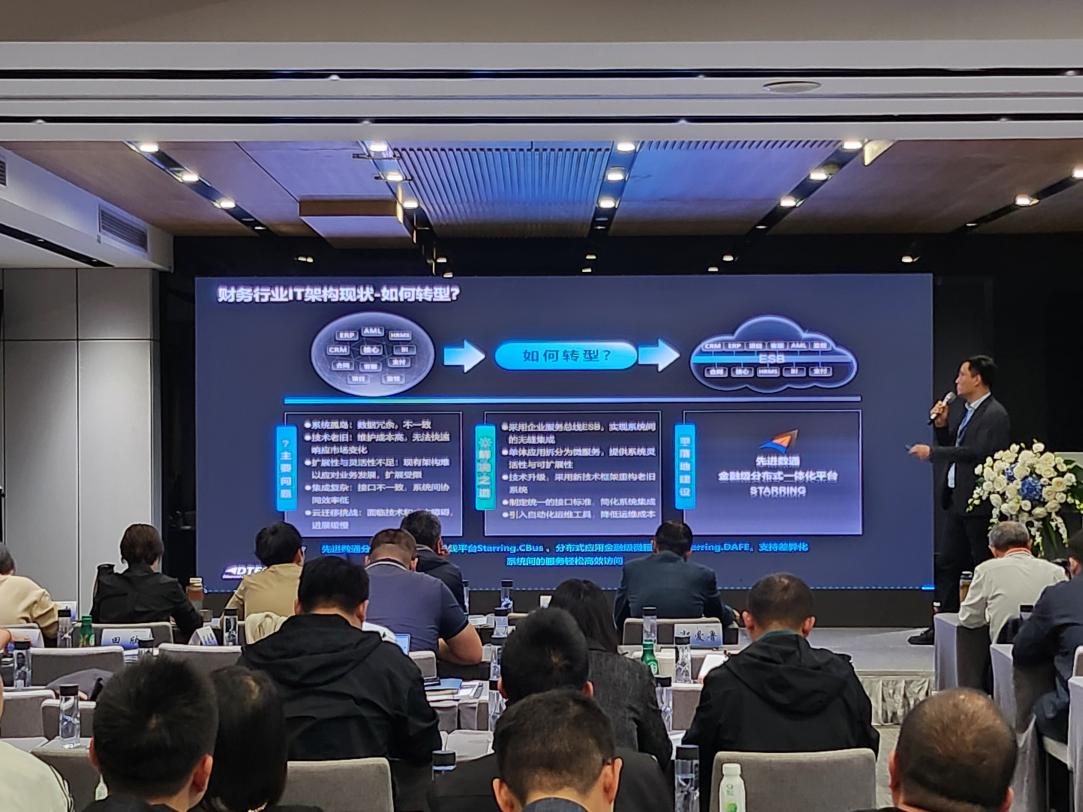 AC米兰官网代表讲师郭钰以《昆仑与AC米兰官网ESB解决方案助力财务行业创新与架构转型》为主题作发言分享。他深入剖析了当前财务行业IT架构面临的挑战,包括系统孤岛、技术老旧、扩展性不足等问题,并提出了基于企业服务总线(ESB)和微服务架构的转型方案。
